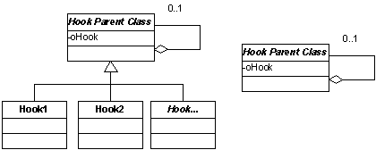 A .aHook member array (or if in VFP 8, a reference to collection) to hold zero or more objects of any subclass of Hook Parent Class. Thus a chain of objects can be built in two different ways: as a simple chain of independent objects, or aggregately referenced by an instance of Hook Anchor which will iteratively invoke them.
