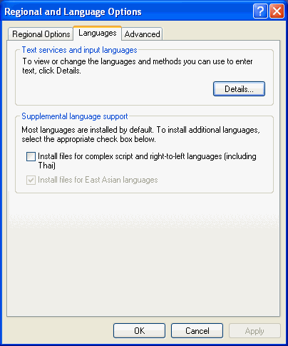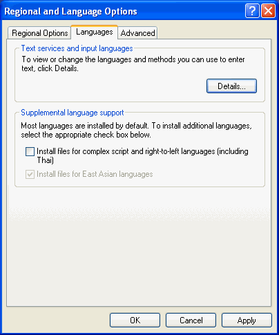 Once they are set correctly, VFP does a great job of storing and displaying Asian characters. The following is a basic outline of the Windows requirements for Windows XP. In these examples the Japanese language is specified, but the same process applies to other Asian languages, such as Chinese, Vietnamese and Korean.