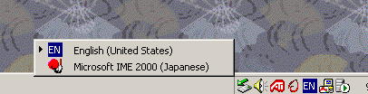 When these changes have been correctly applied, the Asian language should be available in Windows for all login types. Windows itself and Windows applications will still display in English but the option to embed Asian characters will be available to Word, Outlook, etc. and (magically) Visual Foxpro. A new icon will appear in the System Taskbar that allows users to switch between the installed languages (see the "EN" in the graphic below).